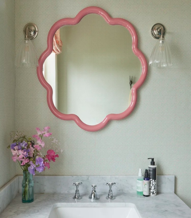 Một chút sắp đặt khéo léo có thể biến chiếc gương quen thuộc thành điểm nhấn lãng mạn, nâng tầm toàn bộ không gian phòng tắm.